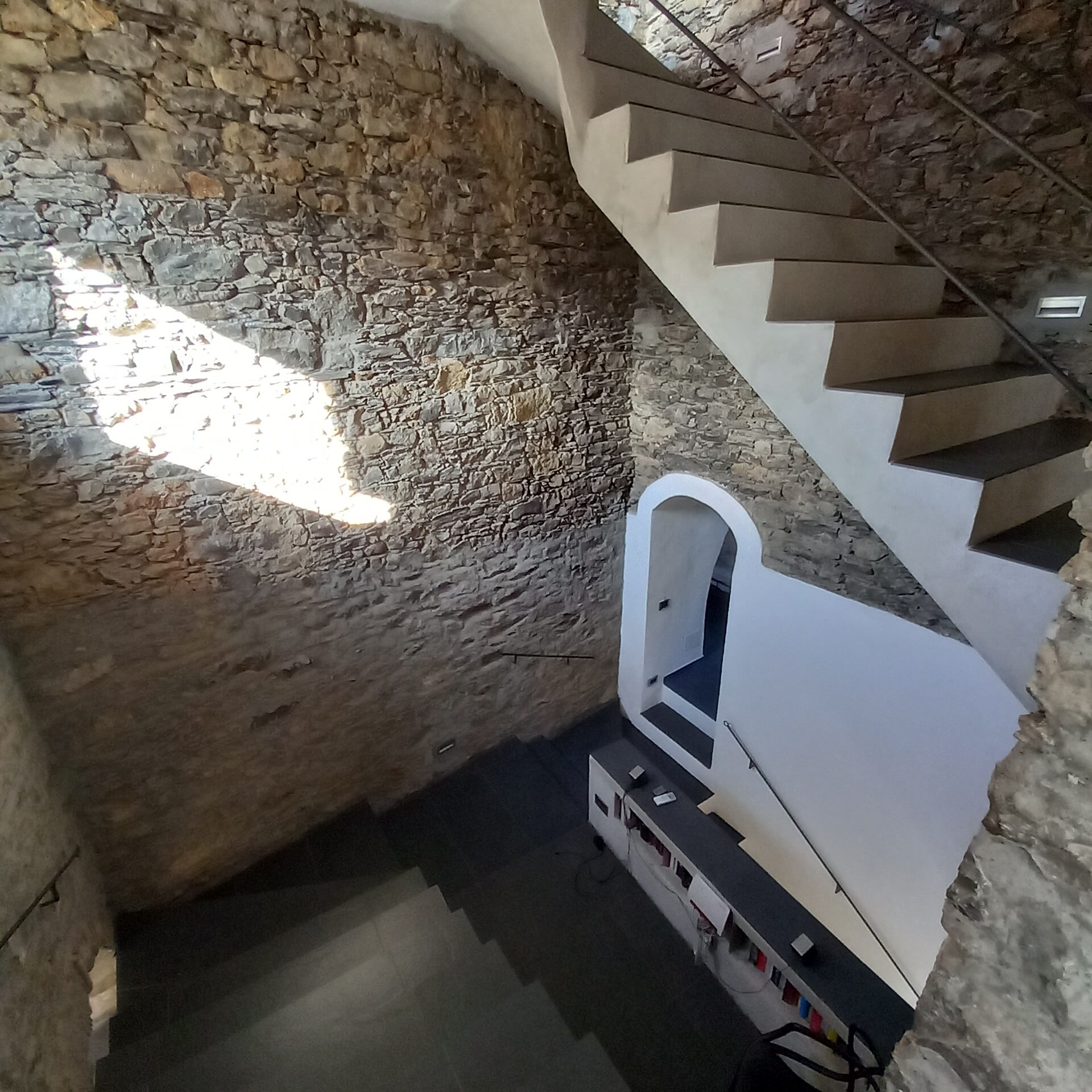 Das Haus “de Sonnaz I” bildet den exponiertesten Punkt von Ripalta. Sein Hauptteil steht wie ein bruchsteinener Monolith mit klaren Kanten im Häusergewirr Ripaltas. Das Anwesen liegt im Ortszentrum, ist aber gleichzeitig abgeschottet, ruhig und nicht einsehbar. Mit seiner Großzügigkeit fällt es aus dem typischen Baustil bäuerlicher Dörfer Liguriens heraus.