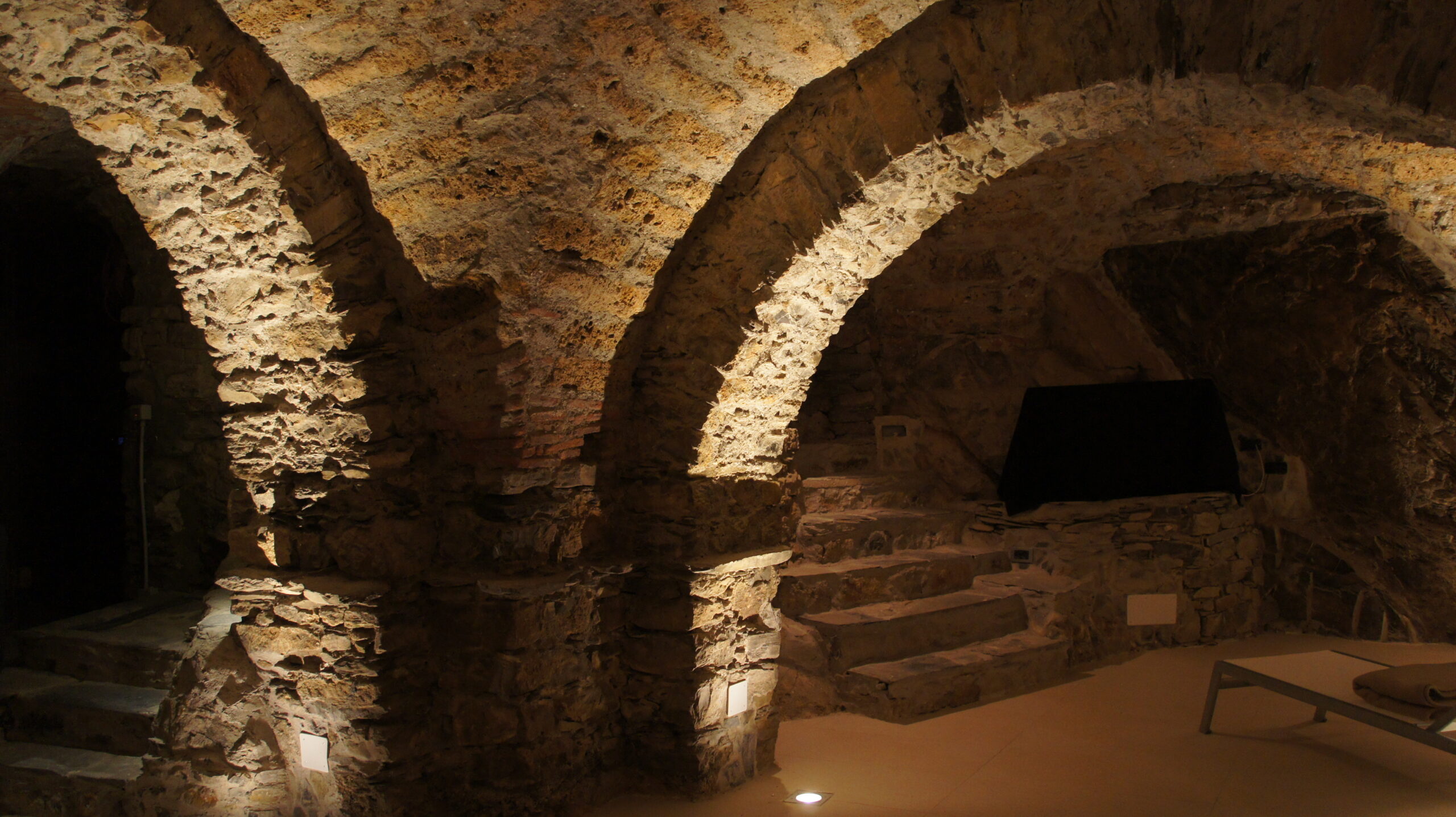 Gleich nach dem Haupttor links geht es in die 47qm große offene Cantina des Haupthauses. Sie beeindruckt durch Ihre mächtigen Bögen, das Doppelgewölbe und die Standpfeiler auf denen das ganze Haus ruht. Sie ist insbesondere in der heissen Zeit ein idealer Kontrast zur Dachterrasse. Sie kann im Sommer für Einladungen, kleine Feste oder Veranstaltungen genutzt werden.